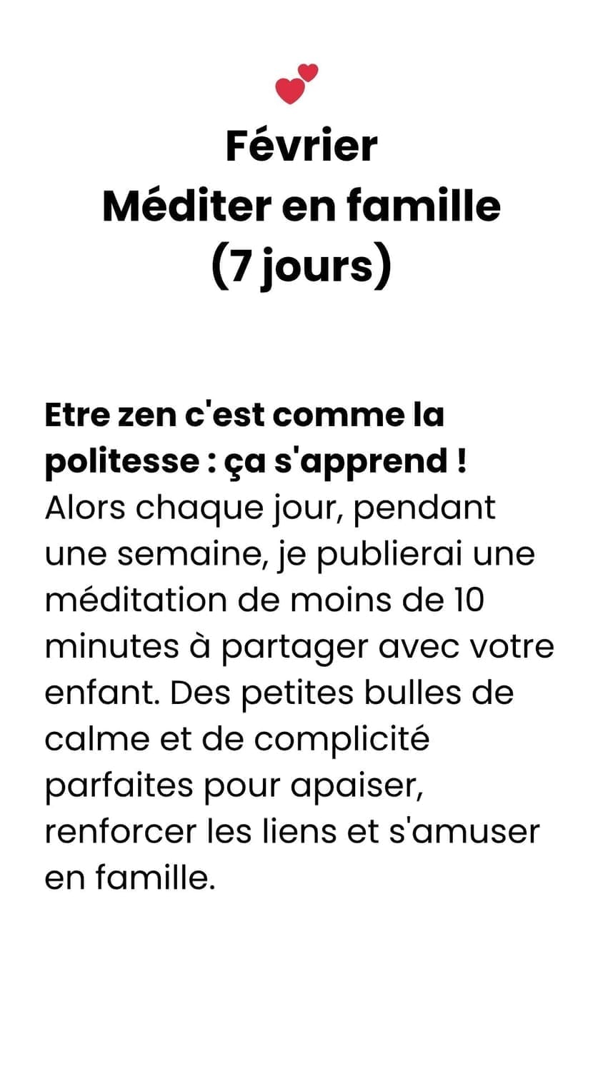 Au programme : mantras inspirants, méditations inédites, défis zen, défis méditation, outils de gestion du stress, hotline parentalité ! ❤️